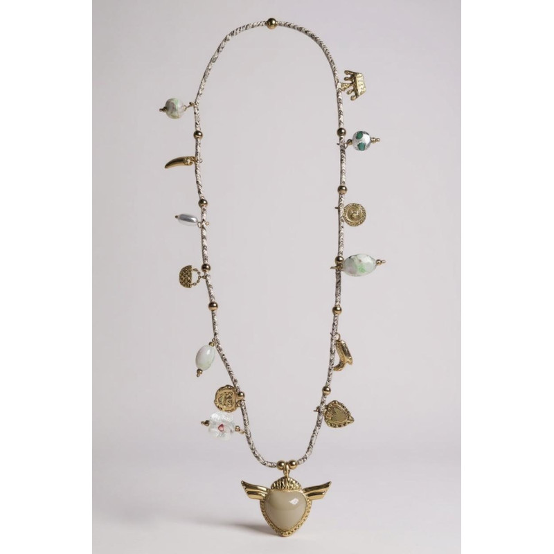 Collana acciaio 90cm cordino vetro